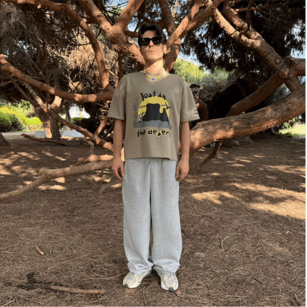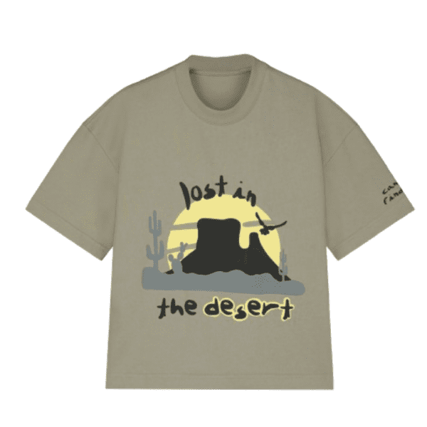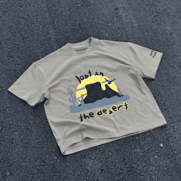 Desert tee. Design on the front with the phrase "lost in the desert".