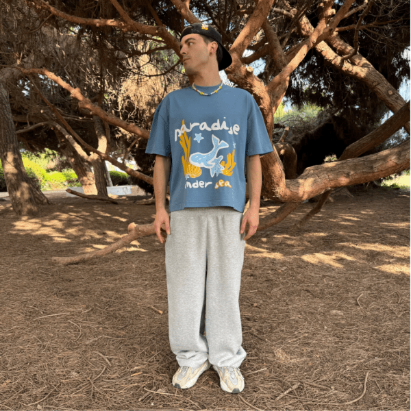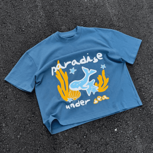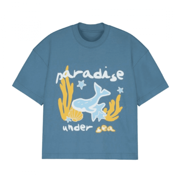 Paradise tee. Design on the front with the phrase «paradise under sea».